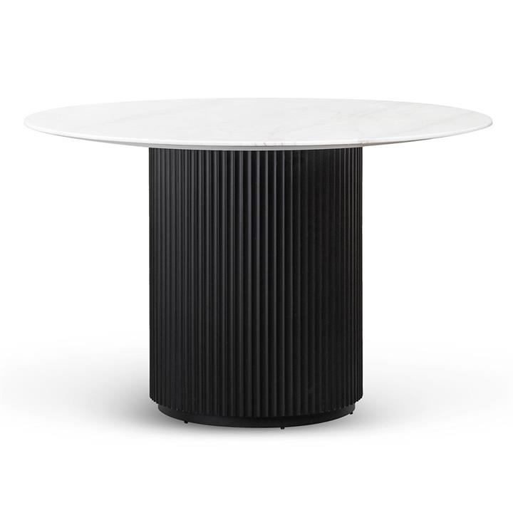The stunning white marble tabletop and sleek black metal base of this dining table create a timeless and sophisticated look that elevates any decor. Elino 1.2m Round White Marble Dining Table’s Black is a statement piece that adds both style and functionality to your dining space. Transform your dining area with our marble dining table set, a complete and luxurious ensemble that combines style and functionality to enhance your dining experience.