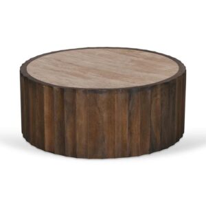 Agosti Travertine Marble Round Coffee Table – White Wash By Interior Secrets