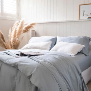 Bamboo Egyptian Cotton Pearl Blue Quilt Cover and Fitted Sheet By Sienna Living